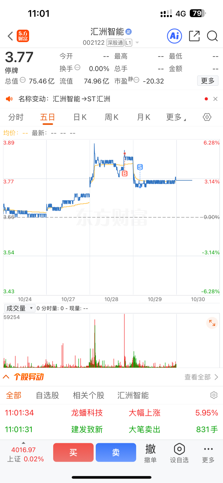 $汇洲智能(SZ002122)$ 有种死里逃生的感觉