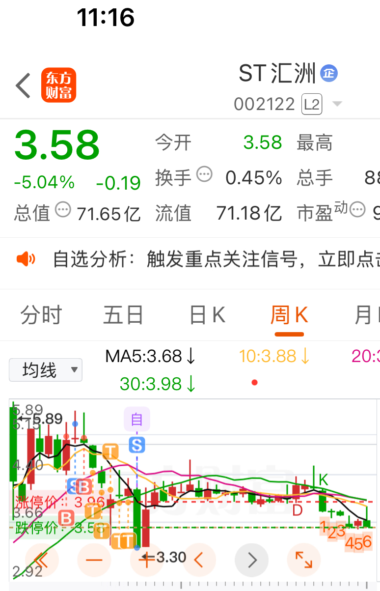 $ST汇洲(SZ002122)$ 上次违规两个跌停、终于st了、骗钱的