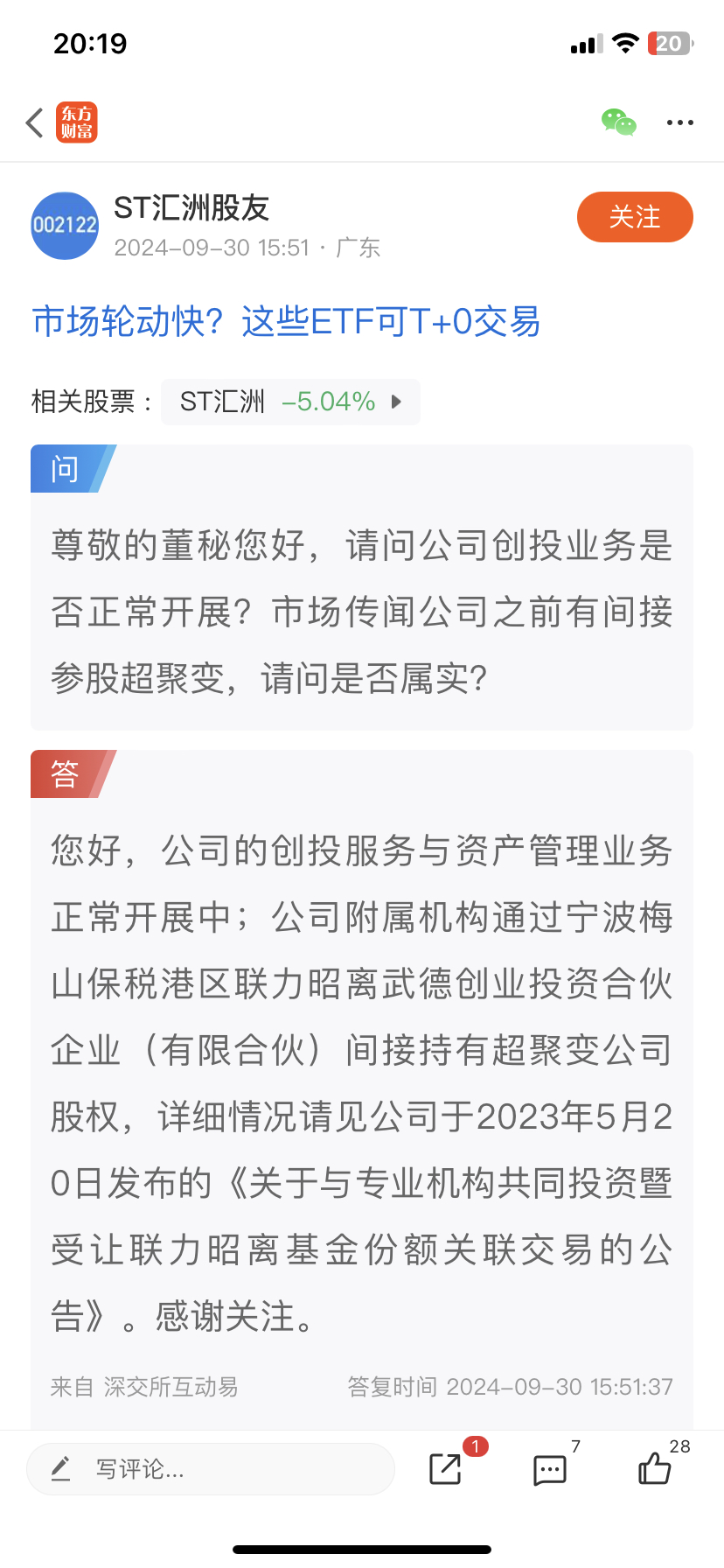 $ST汇洲(SZ002122)$ 持有超聚变股权