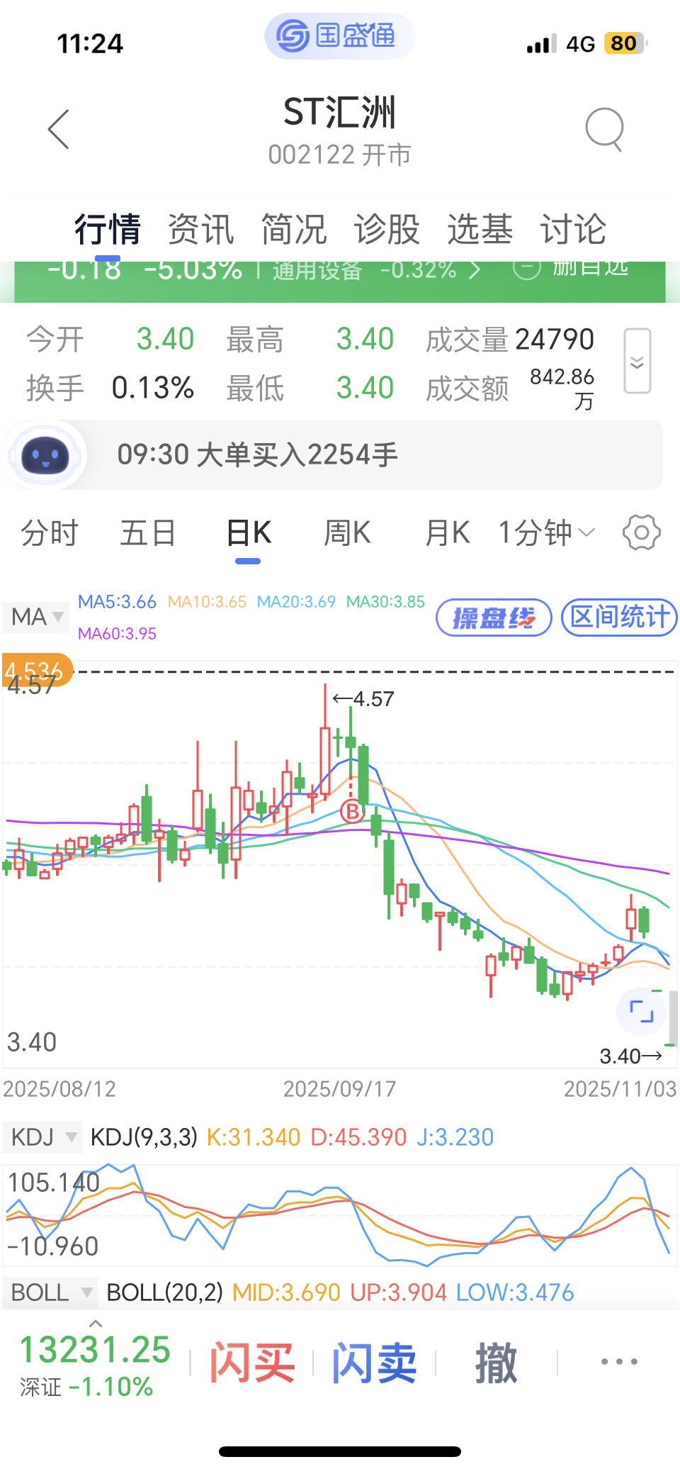 $ST汇洲(SZ002122)$ 没人比我惨了吧,4.536的本,四十多万满仓