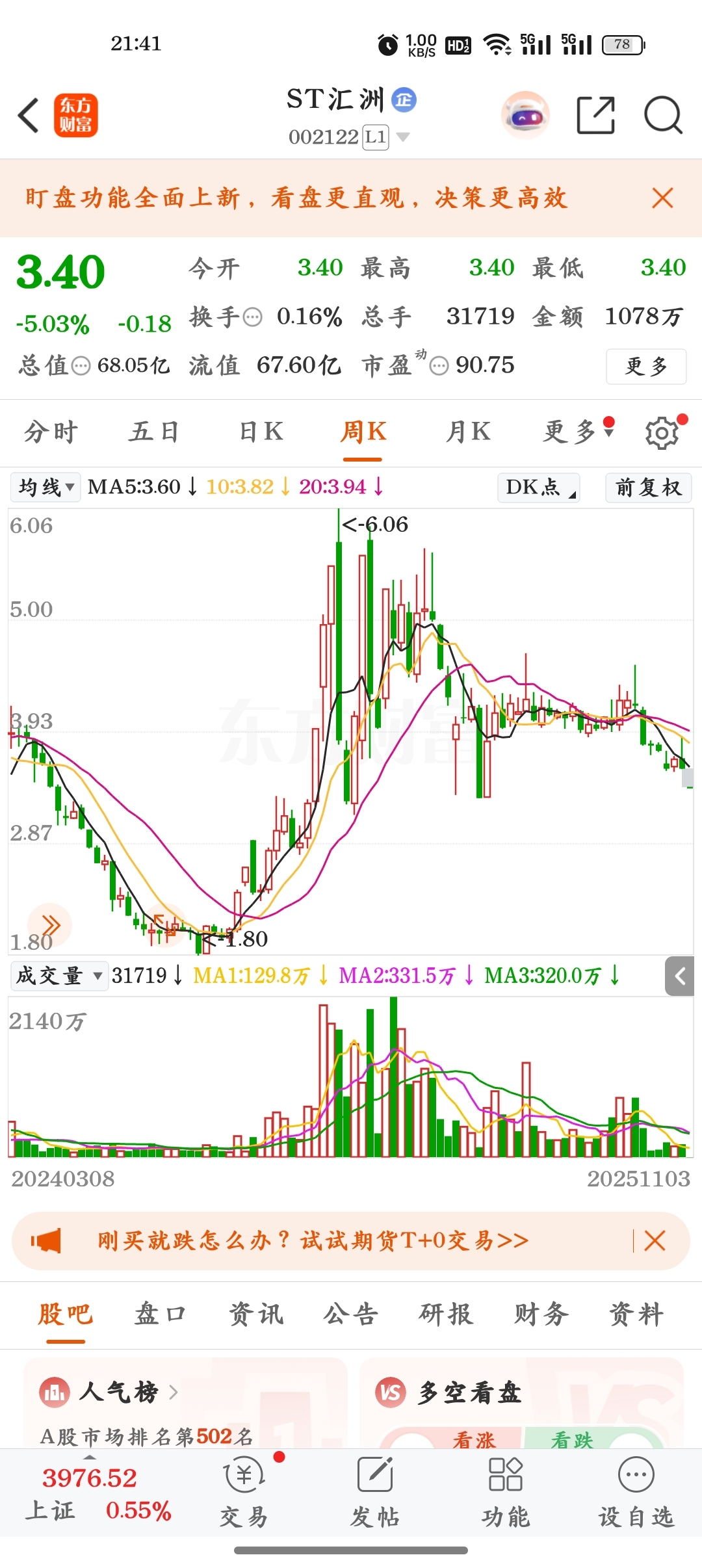 $ST汇洲(SZ002122)$ 看图说话,先关注一下,两块左右,可以买一点!