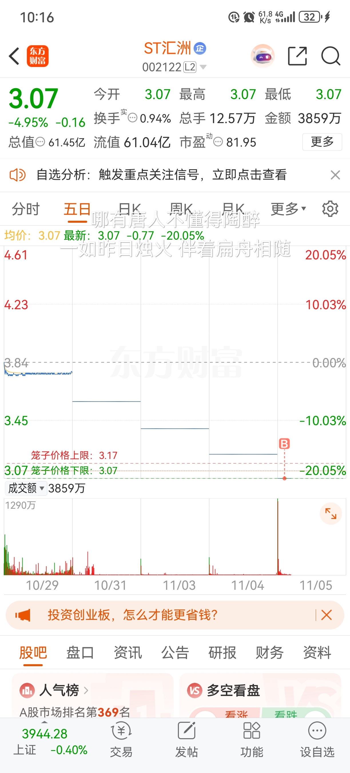 $ST汇洲(SZ002122)$ 我错了 明天放我出去 下次再也不敢了