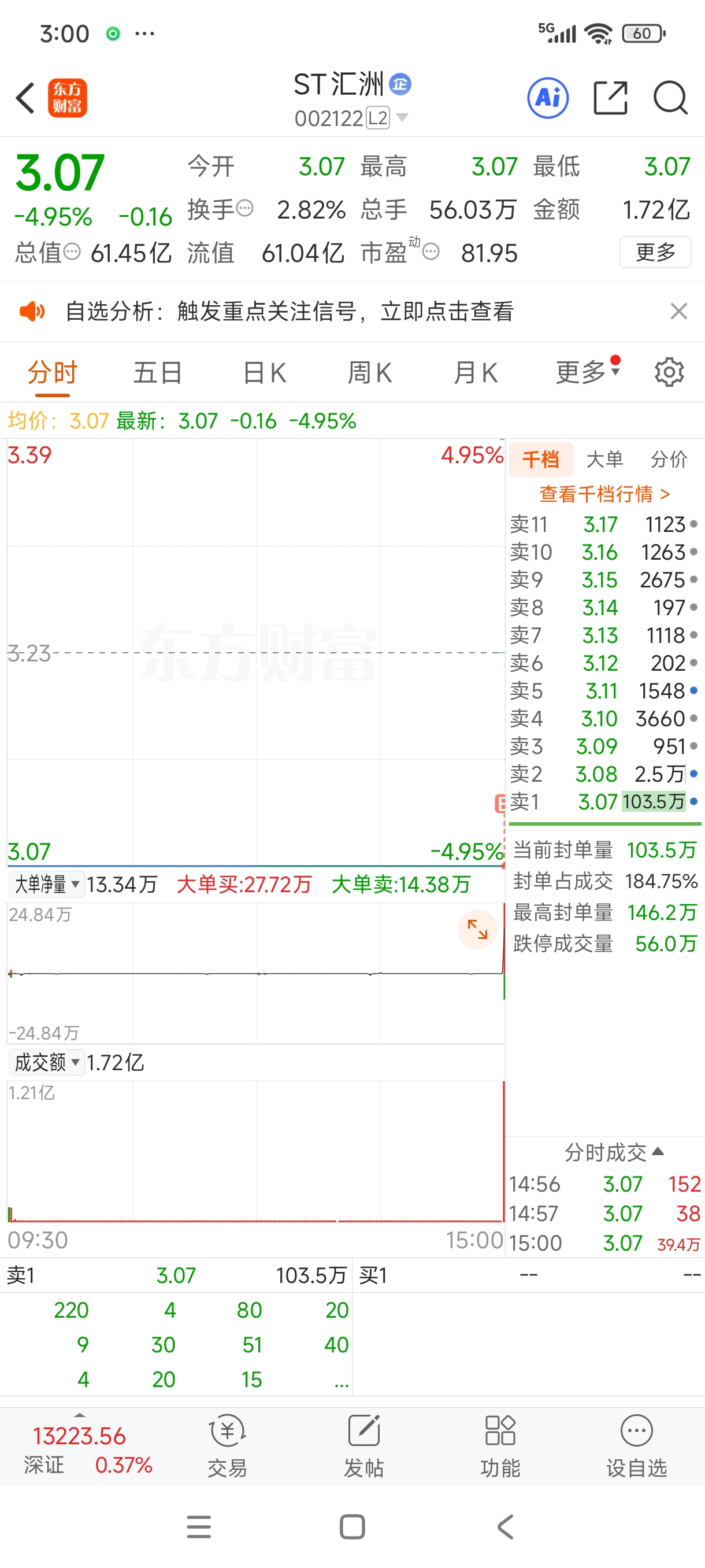 $ST汇洲(SZ002122)$ 我来了