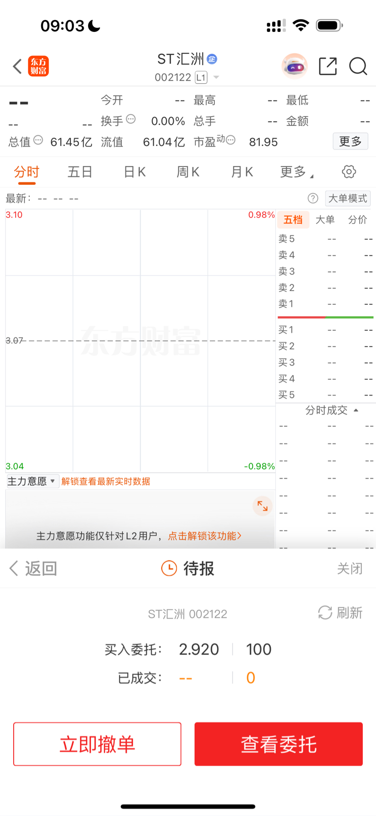 $ST汇洲(SZ002122)$ 能不能赚个猪脚饭