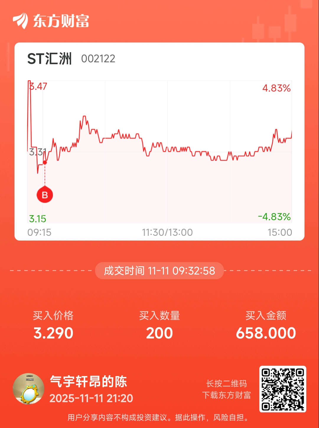 温馨提示: 1.根据《证券法》规定,禁止编造、传播虚假信息或者误导性信息,扰乱证券市场;2.用户在本社区发表的所有资料、言论等仅代表个人观点,与本网站立场无关,不对您构成任何投资建议。用户应基于自己的独立判断,自行决定证券投资并承担相应风险。《东方财富社区管理规定》