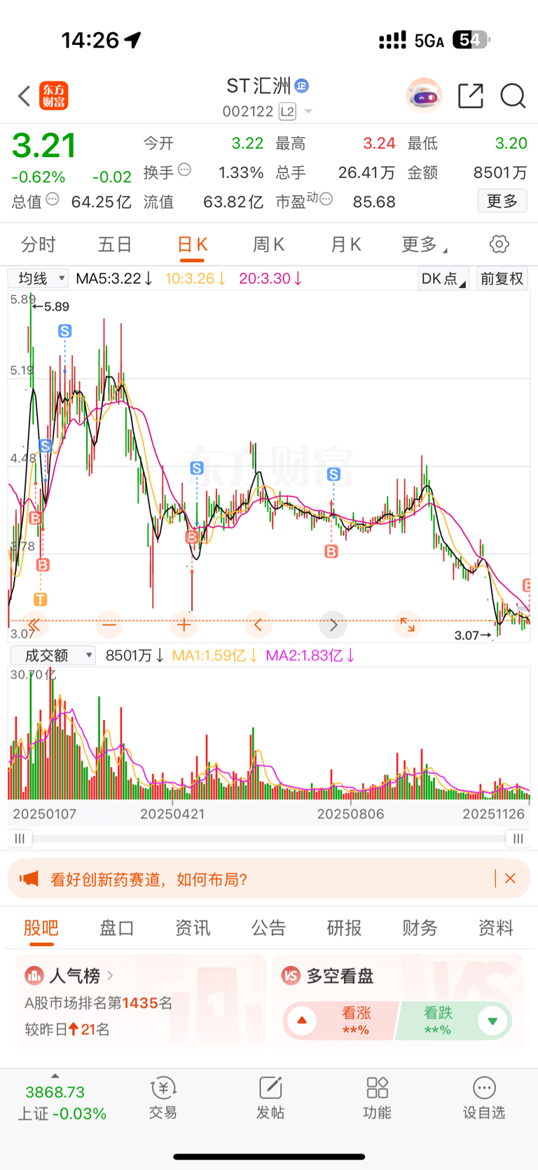 $ST汇洲(SZ002122)$ 一年之内,买过四次