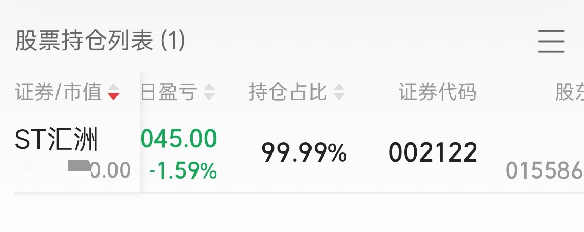 部分坚守者估计已经扛不住了,我买入也已经亏了五六个点,但一点儿都不担心。St天马,st步高,st易事特,本人玩过的St都经历过大落之后的大起。这次继续坚定St汇洲。