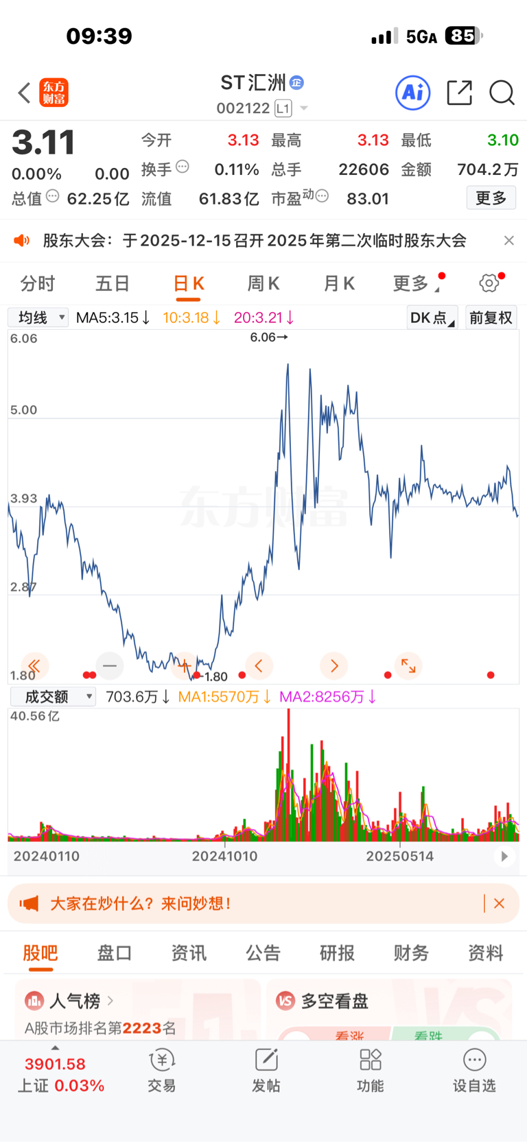 $ST汇洲(SZ002122)$ 1.8起来的,还得往下,再不卖又要挂山上了,快卖…