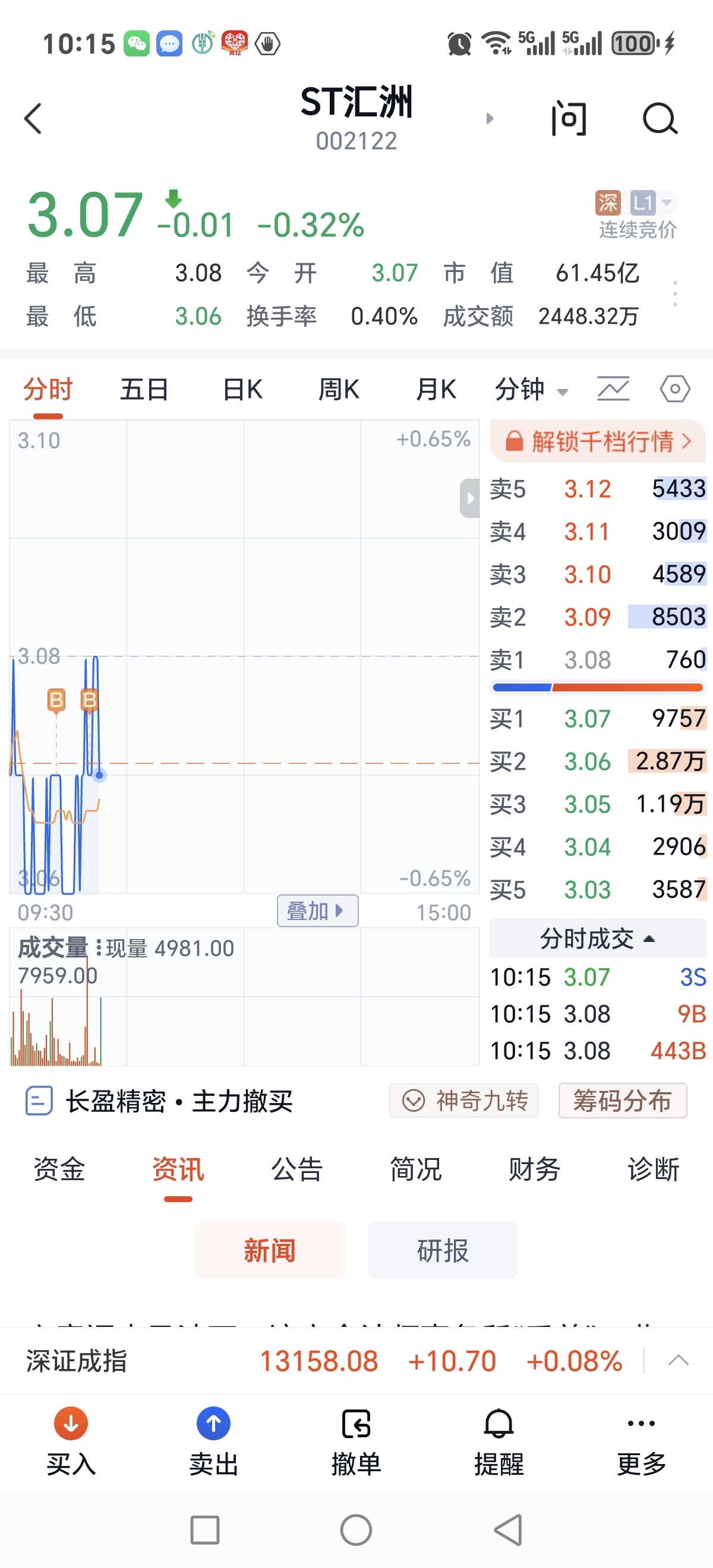 $ST汇洲(SZ002122)$ 买最熊的股,做最牛的人。你说,我能!