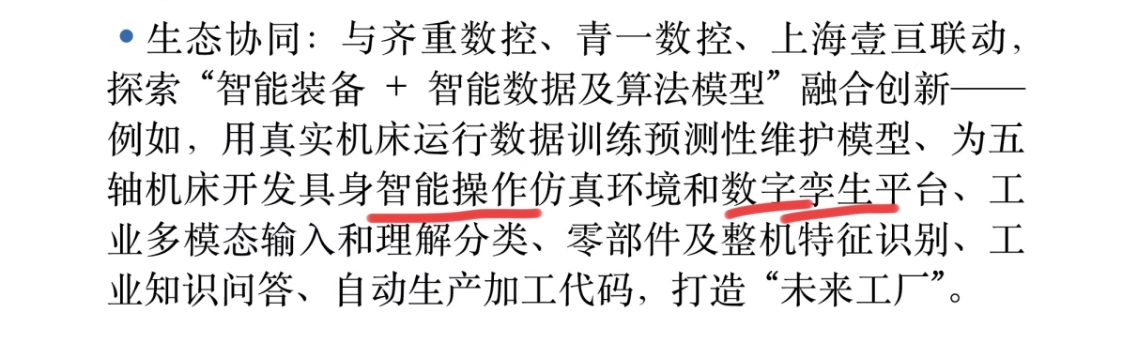 另外配合五轴机床开发具身智能仿真环境与数字孪生平台。