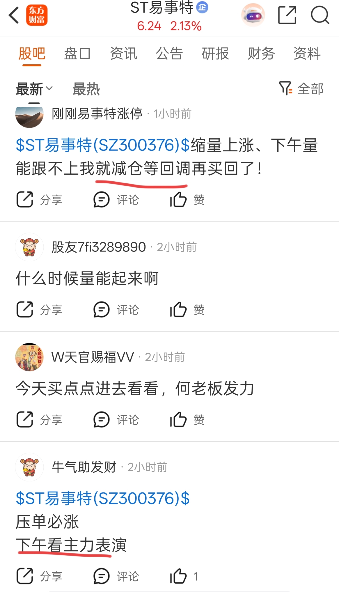 $ST汇洲(SZ002122)$ 看看隔壁的小易股吧,挺有意思的。一涨一跌,心如止水。
