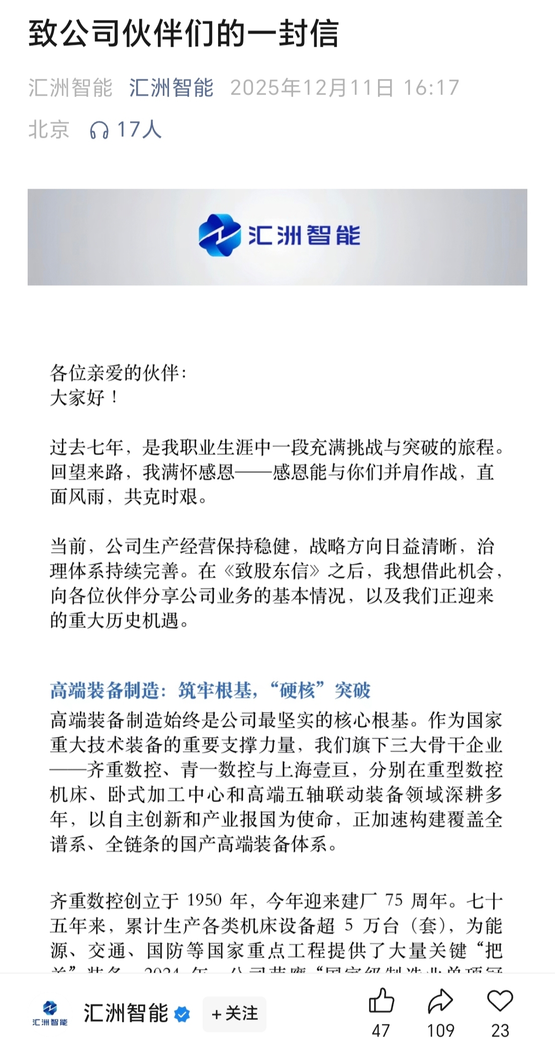 $ST汇洲(SZ002122)$ 武剑飞告别过去开启未来的信还是写得可以