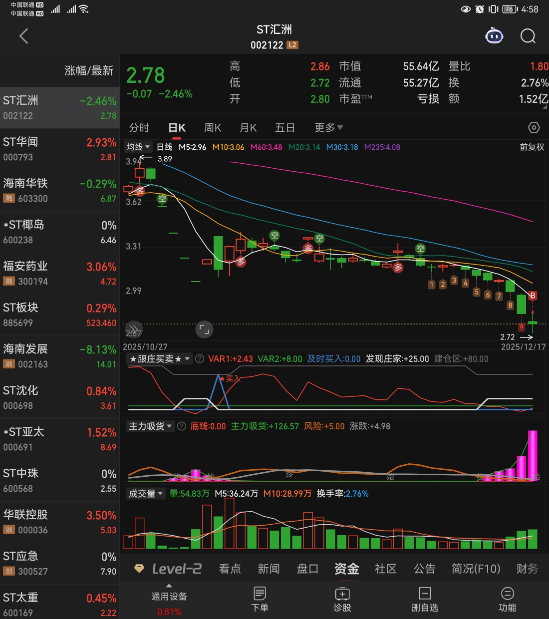 $ST汇洲(SZ002122)$ 感谢给我低位建仓的机会,越跌越买,今天20%仓位,哈哈哈。