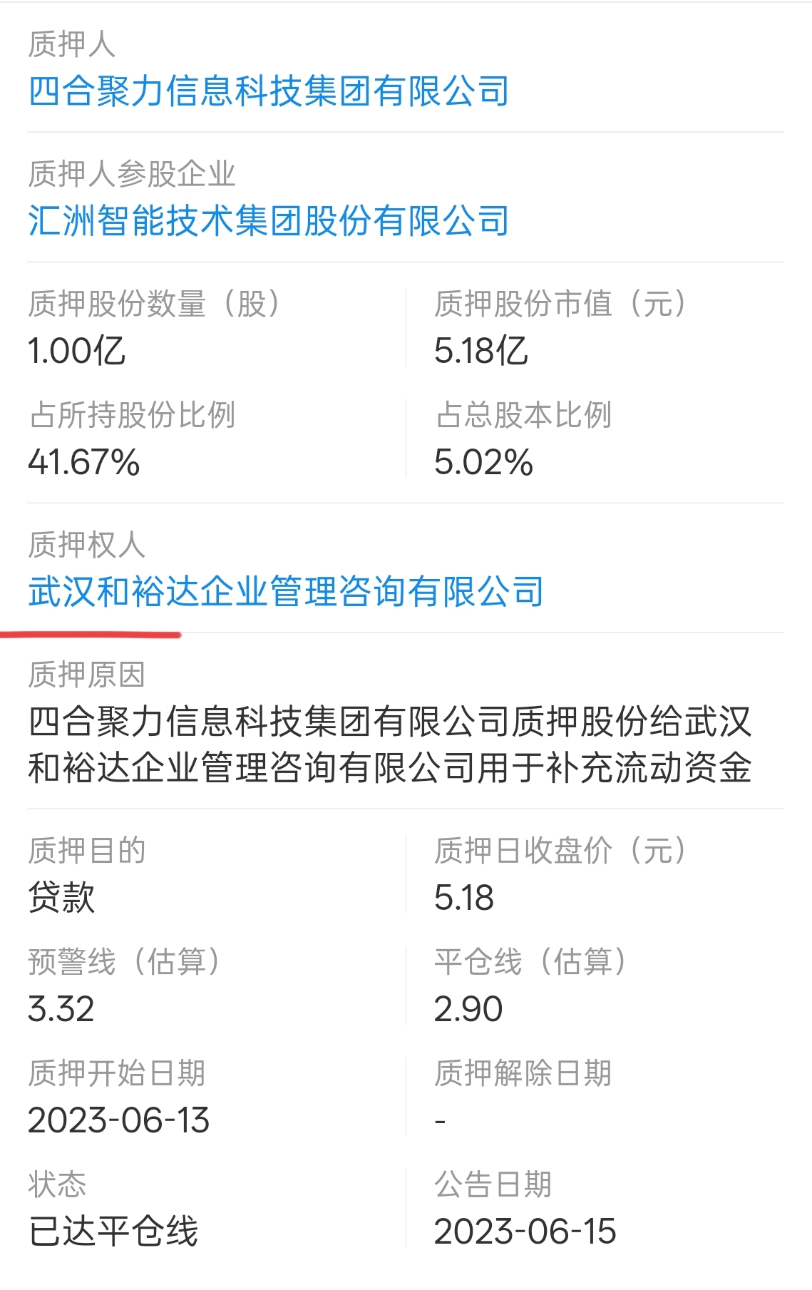 四合聚力质押权人都是湖北企业,真是巧合啊。
