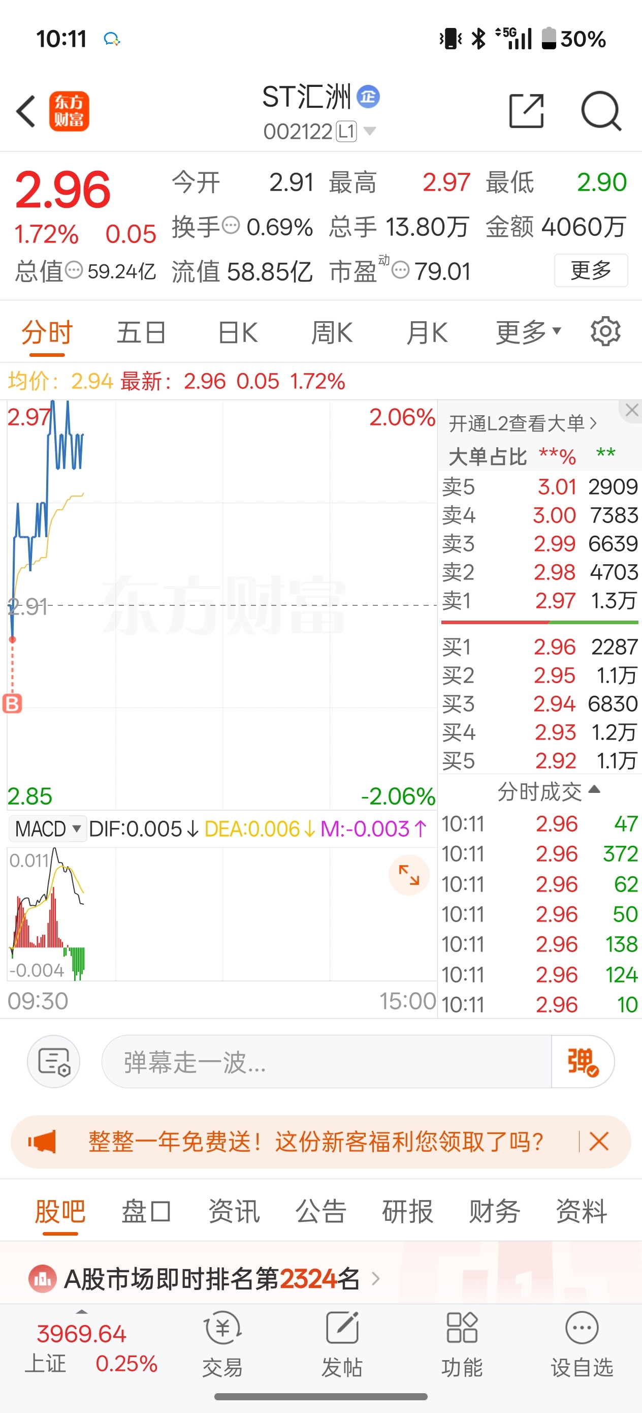 $ST汇洲(SZ002122)$ 哪个大冤种2.90卖给我了