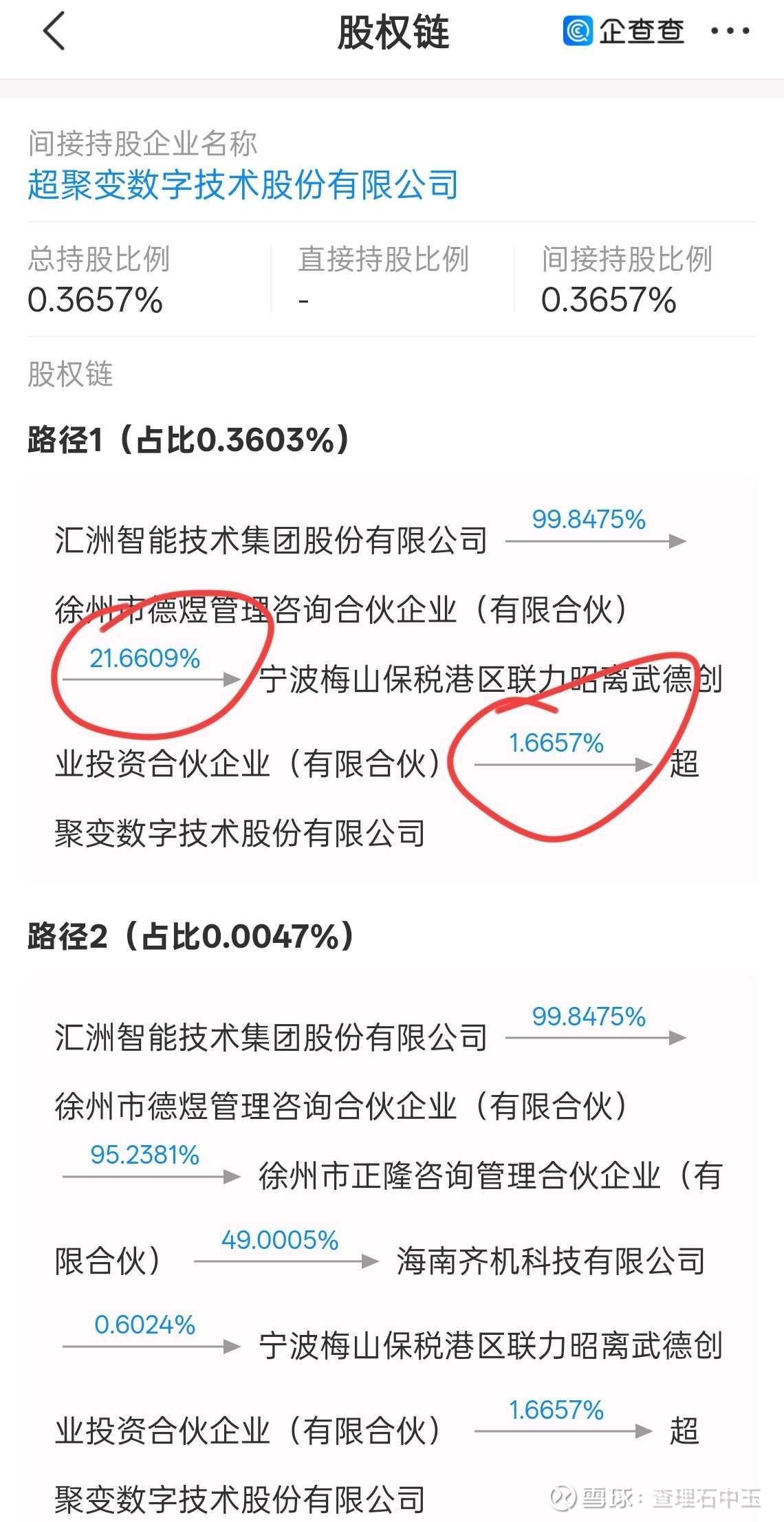 $ST汇洲(SZ002122)$ 汇洲智能参股超聚变数字技术股权链截图,间接持股比例0.3657%: