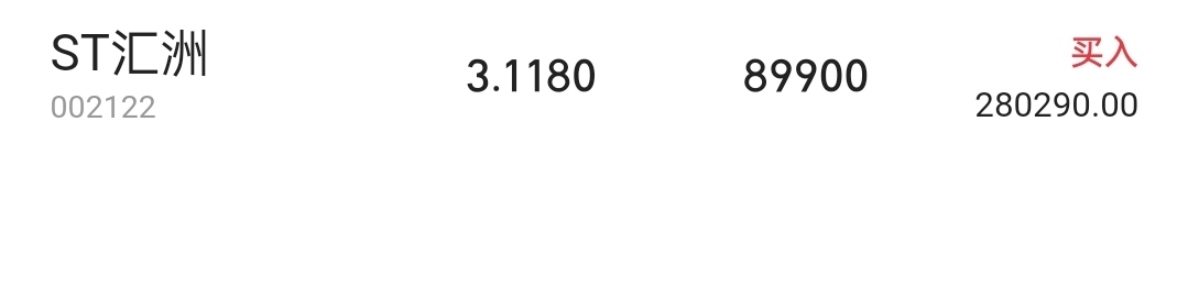 $ST汇洲(SZ002122)$ 跌了就买,管它涨跌