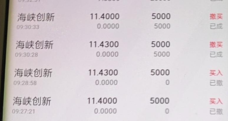 早上看到汇洲绿盘,撤了海峡创新的挂单,挪过来加仓,结果海峡创新砸了一下马上直线拉