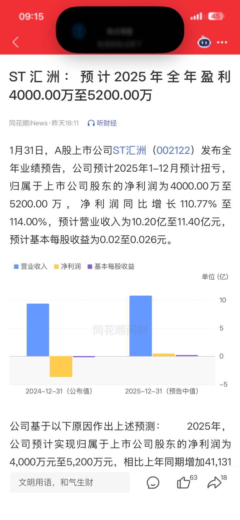 $ST汇洲(SZ002122)$ 同比增长百分之一百
