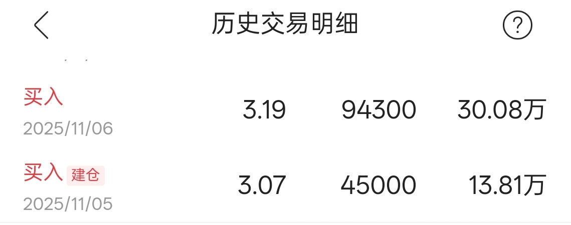 继续晒单建仓的记录,一路买买买,从3.07买到3.37,中间有盈利也没有T,因为