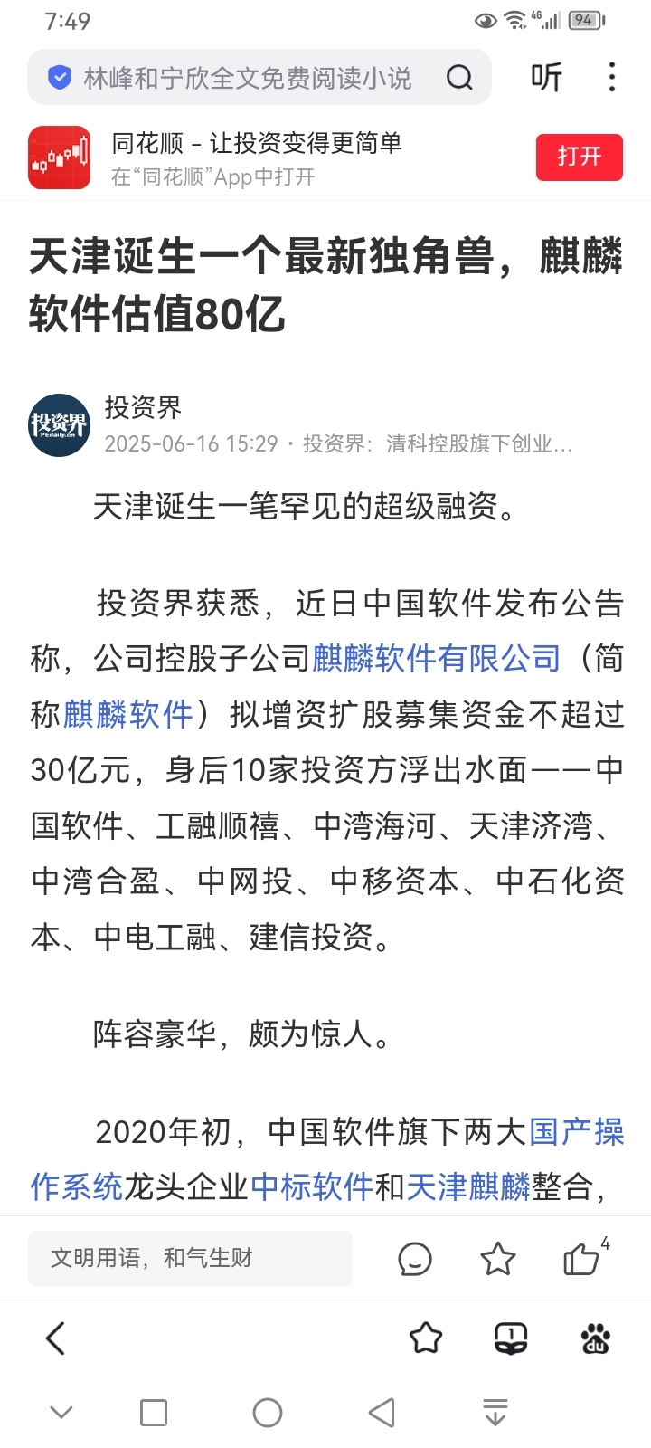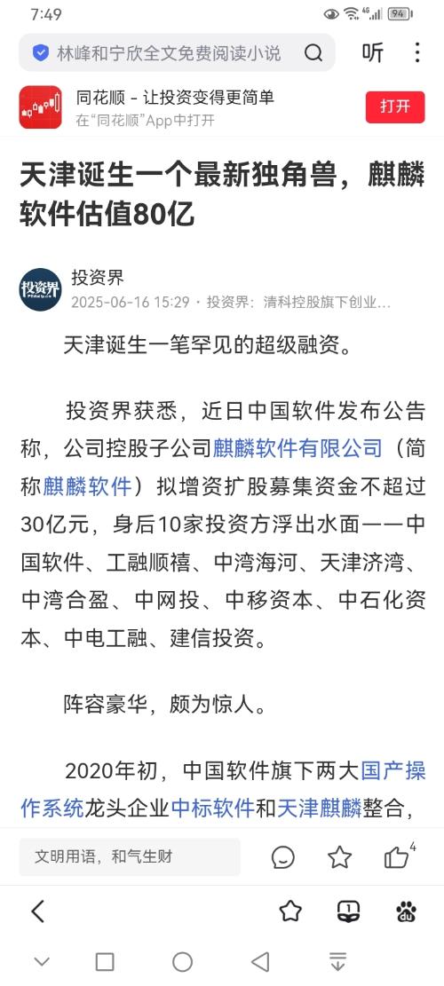 *   麒麟软件估值: 约 83.55 亿元。