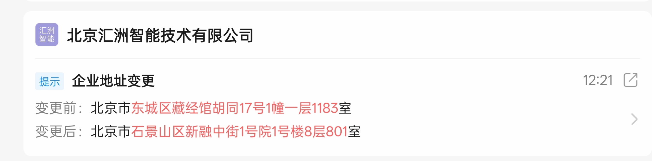 刚刚看到公司换地址了,新地址跟12月份的快讯里出现的地址居然是同一个区。估计热热数据又有新动作了。2026年决定汇洲智能市值的两个因素: 一个是热热数据扭亏为盈,一个是超聚变上市收益。