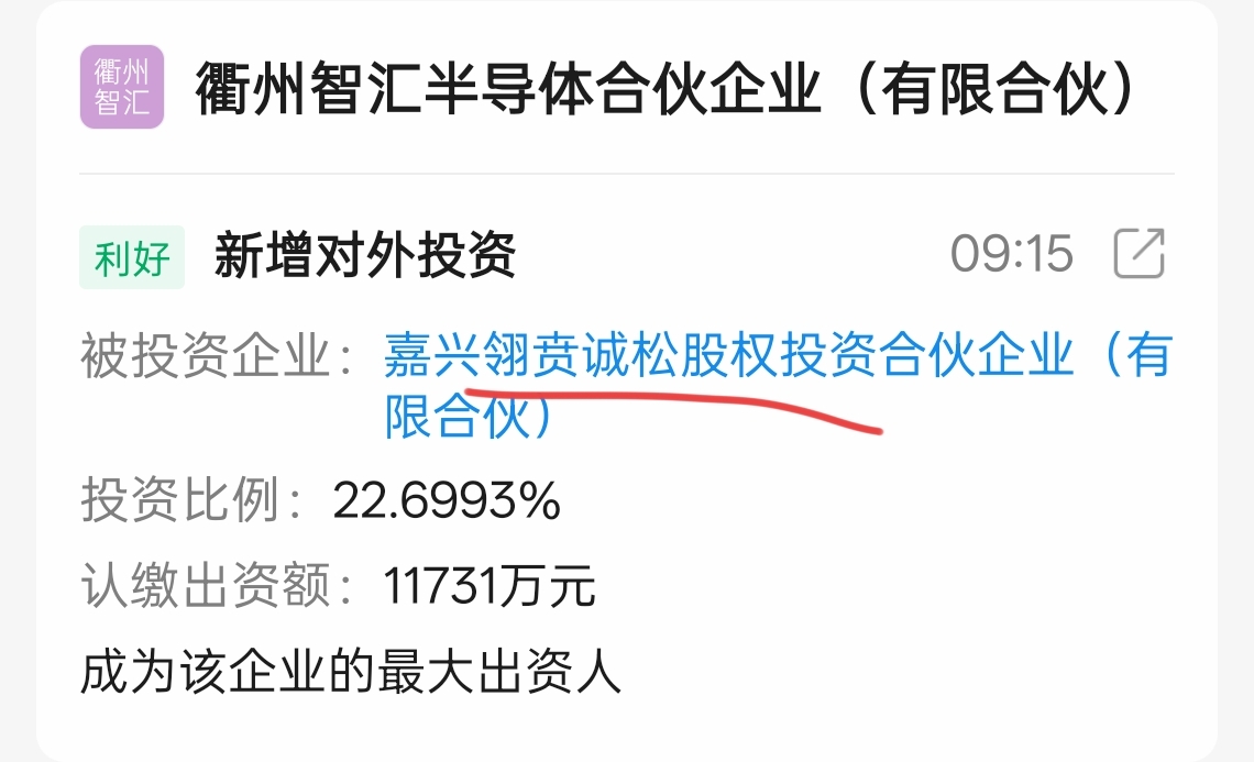 衢州国资与汇洲智能合资衢州智汇半导体,智汇半导体最近增投资嘉兴翎贲基金,嘉兴翎贲