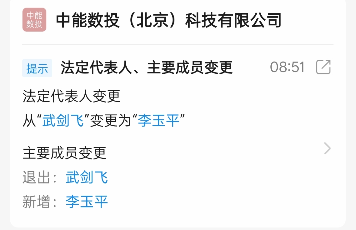 汇洲智能最近频繁动作,董事更换,参股基金比例变更,现在中能数投也变更法定人与董事