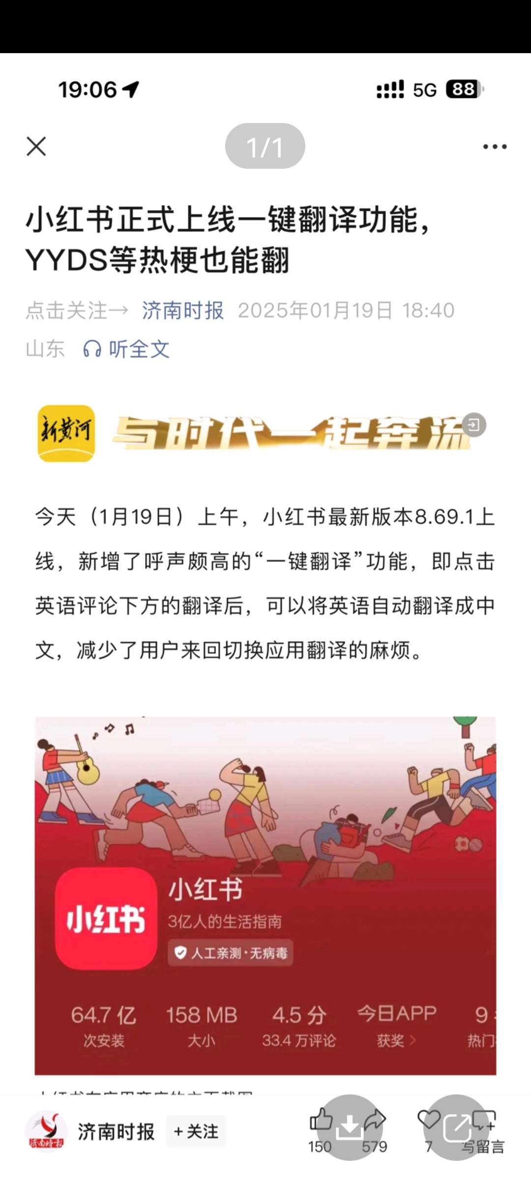 小红书可以一健翻译功能了