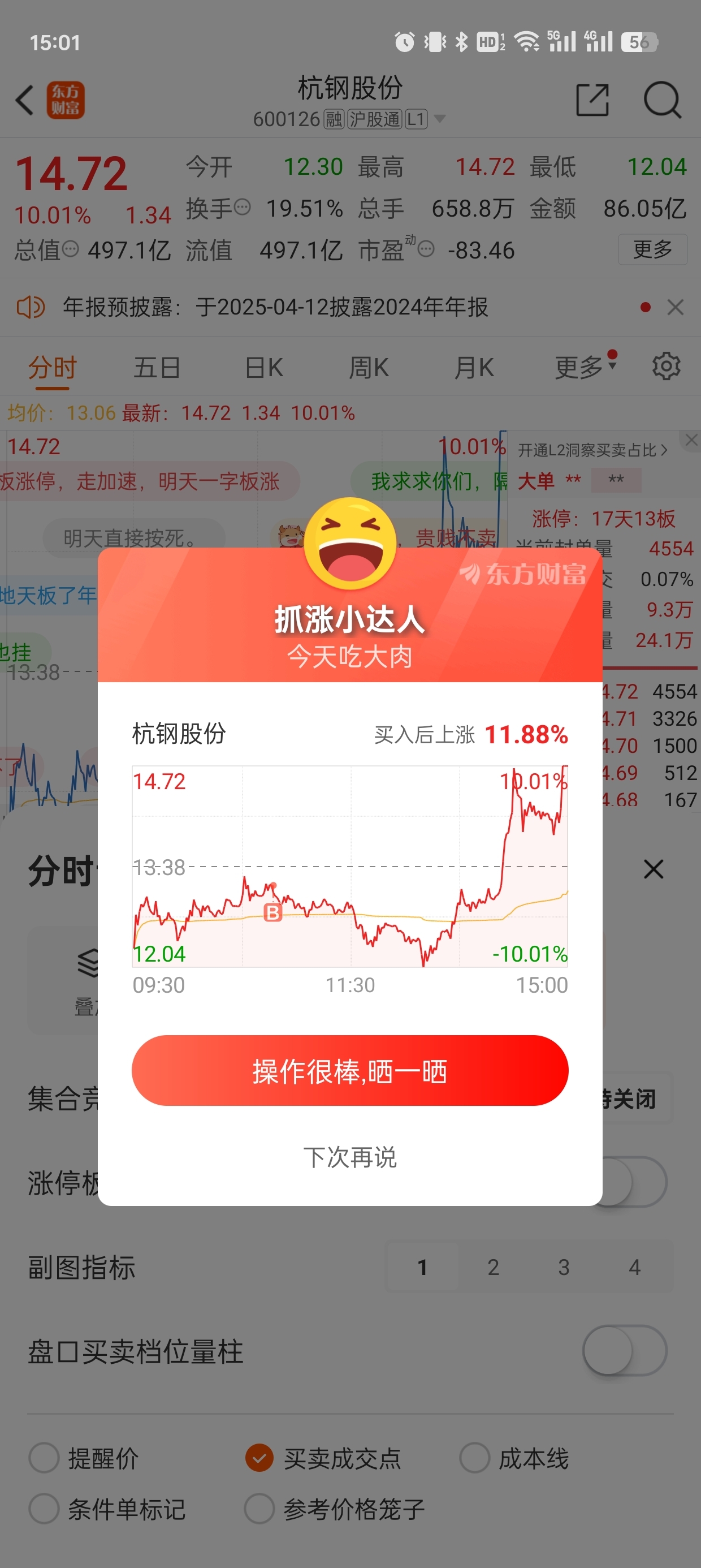 $梦网科技(SZ002123)$ 卖了梦网后,马上进入杭钢!一刻都没停!犹豫就会败北!我女朋友已经把杭钢的代码写咪咪上了!明天杭钢继续!梦网的兄弟们,也祝你们发财!删自选,不再来这里了!