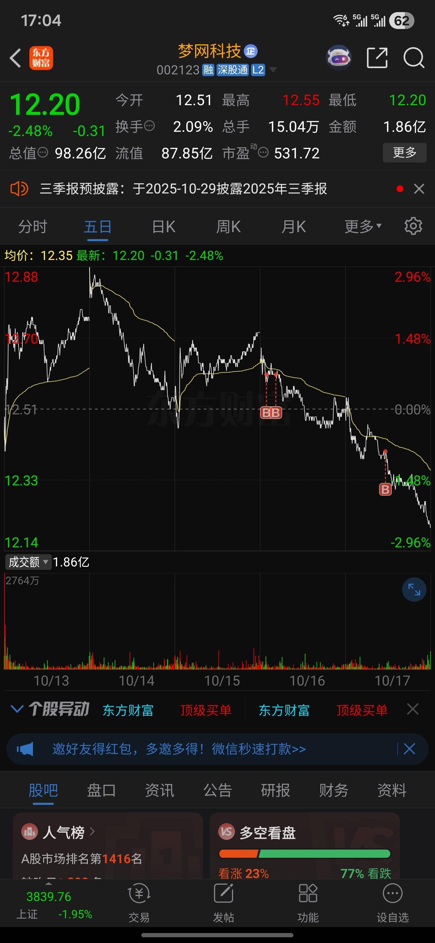 $梦网科技(SZ002123)$ 又是出血的一天#炒股日记#
