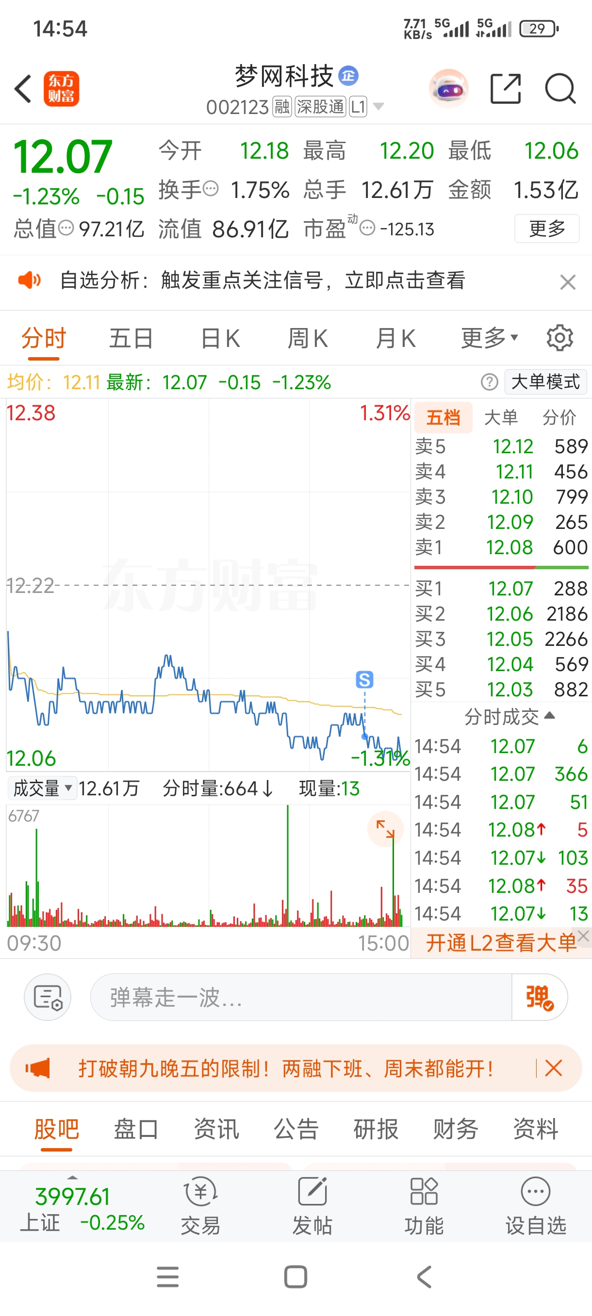 $梦网科技(SZ002123)$ 家人们,我把最后一部分也割了,亏了百分之32,希望我割肉后能涨上去。。。