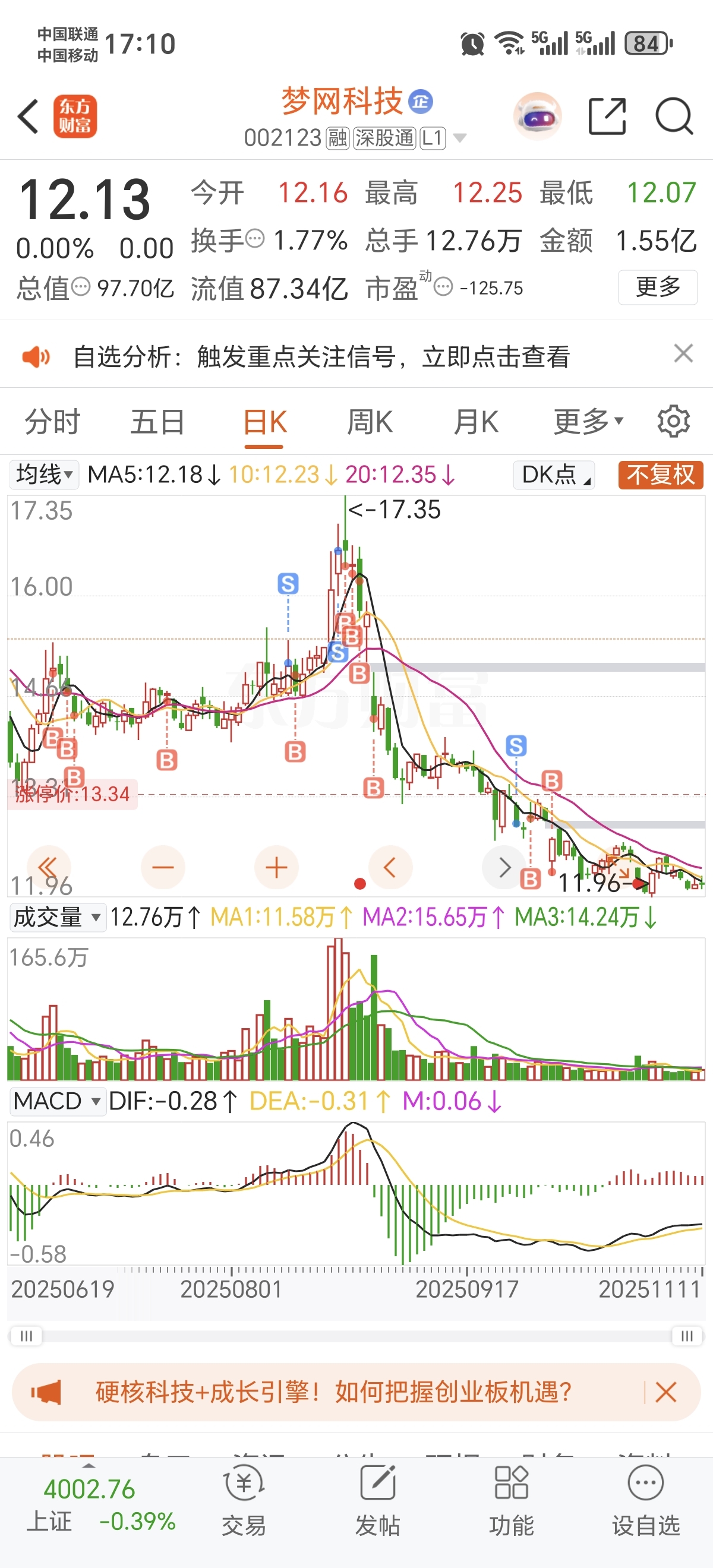 $梦网科技(SZ002123)$ 还有比我成本高的么