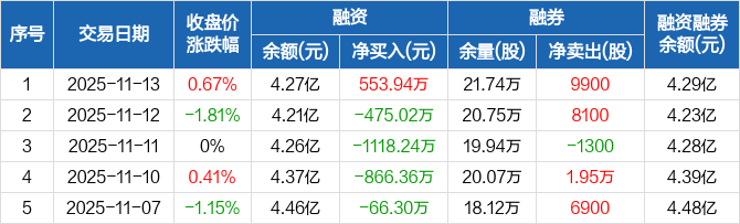 梦网科技:融资净买入553.94万元,融资余额4.27亿元(11-13)