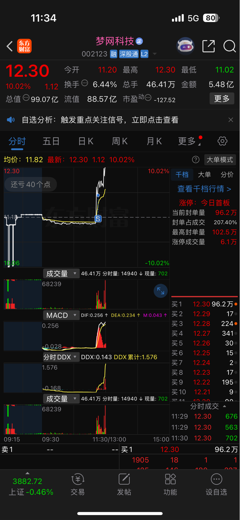 $梦网科技(SZ002123)$ 今天有多少跟我一样踢飞的,成本16.6了