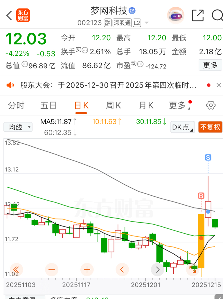 $梦网科技(SZ002123)$ 上周五本来还买后悔的。傻人有傻福
