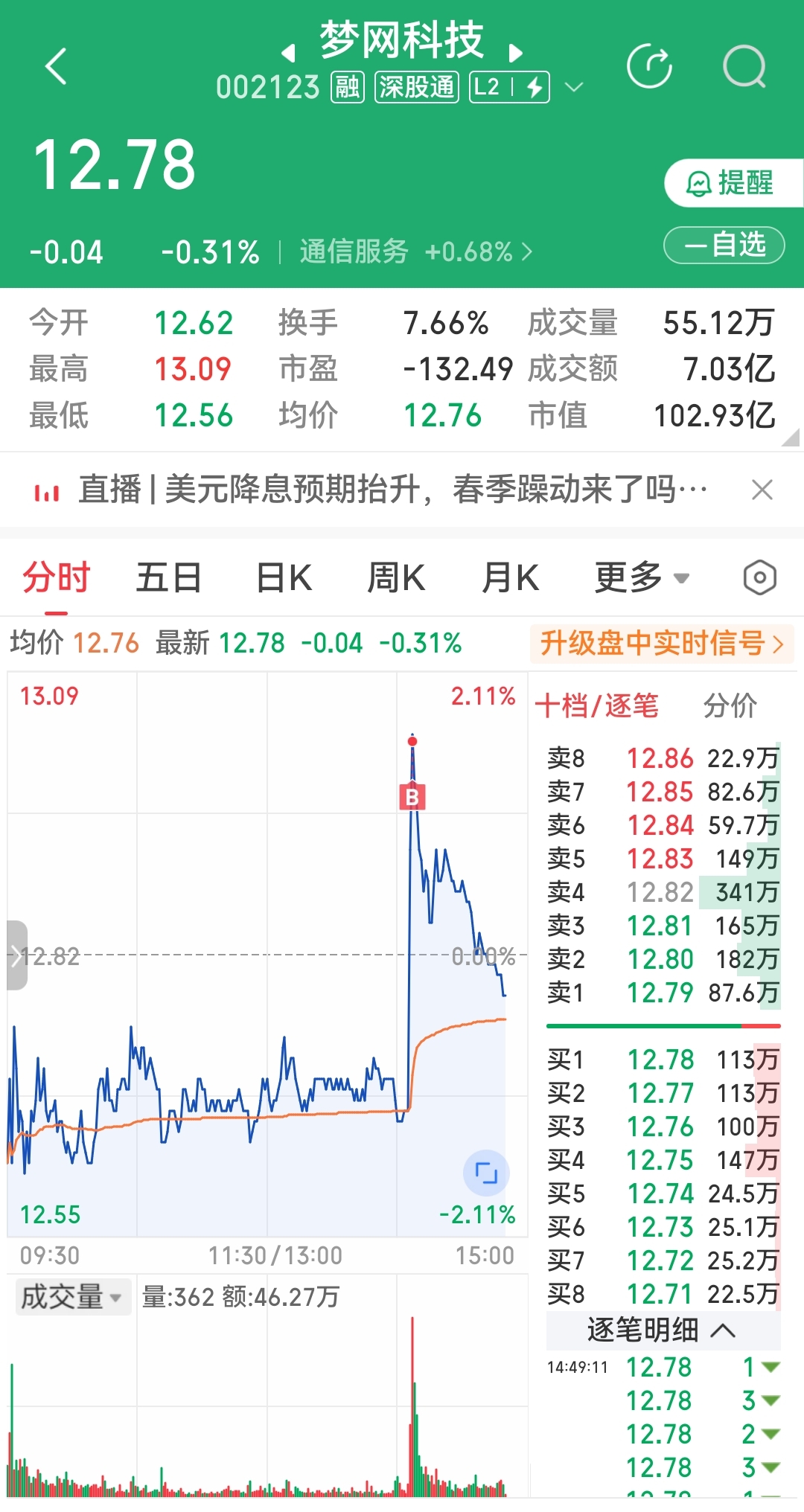 $梦网科技(SZ002123)$ 连续两天上当 唉