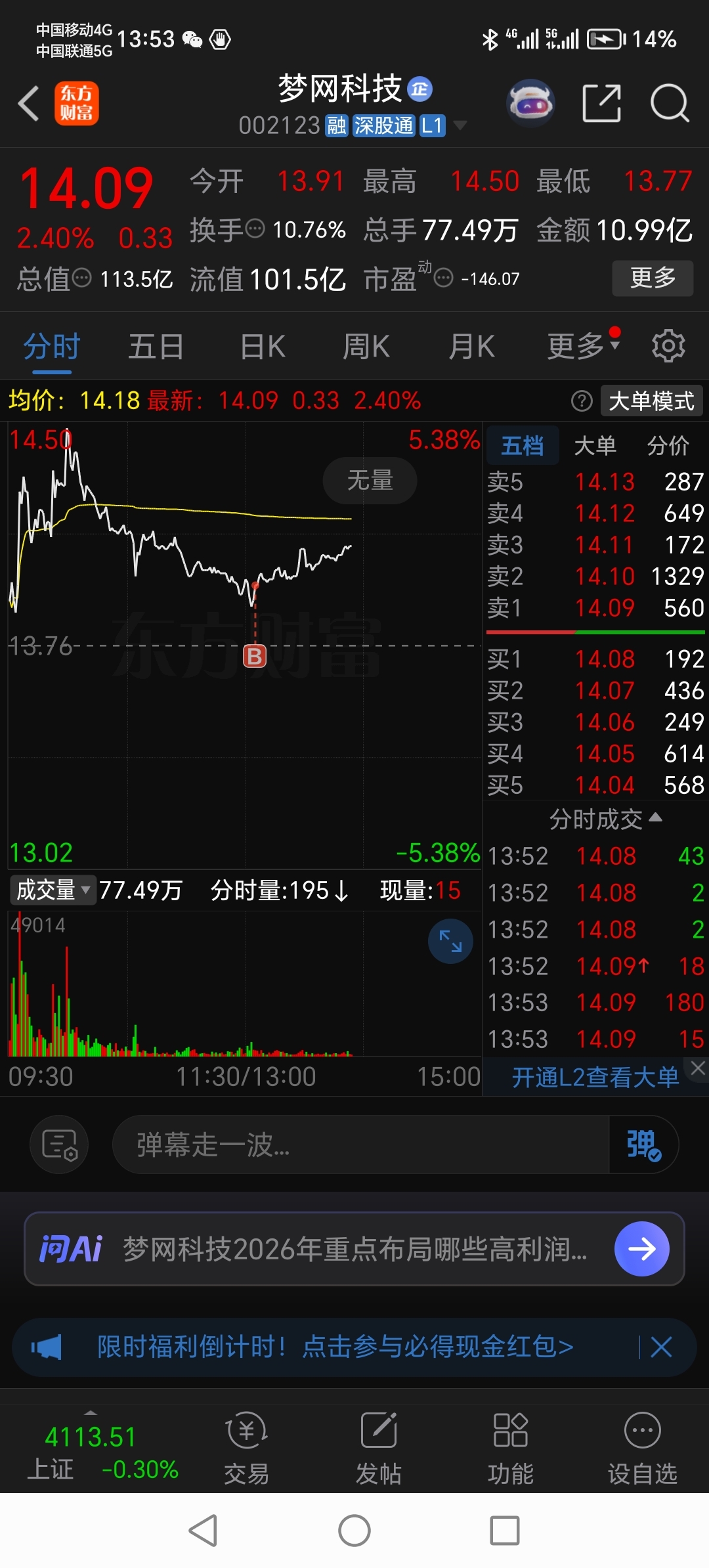 $梦网科技(SZ002123)$ 完美抄底,底部量能堆积,准备迎接14.11关键位的突破,Ai+通信,不想涨都难,明天能否拉板,拭目以待!