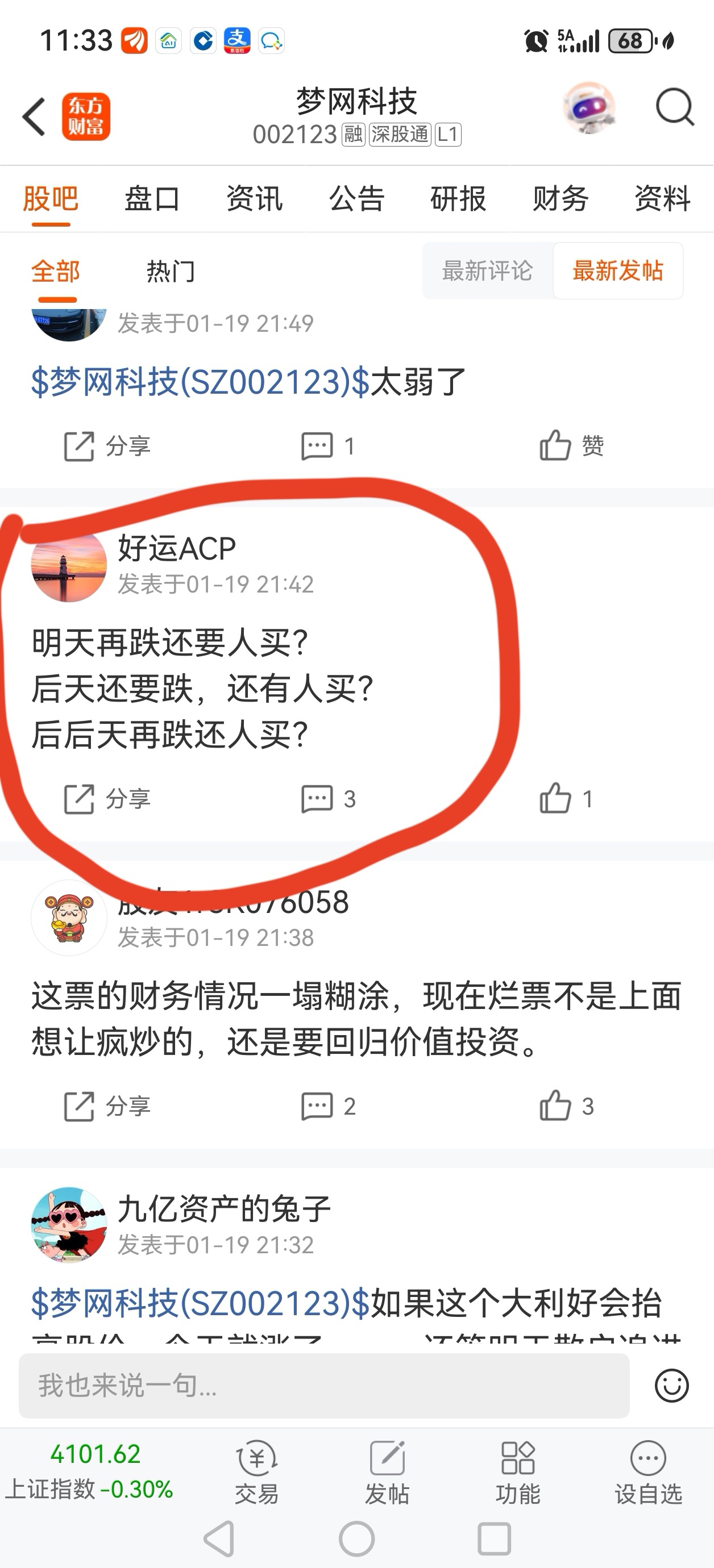 温馨提示: 1.根据《证券法》规定,禁止编造、传播虚假信息或者误导性信息,扰乱证券市场;2.用户在本社区发表的所有资料、言论等仅代表个人观点,与本网站立场无关,不对您构成任何投资建议。用户应基于自己的独立判断,自行决定证券投资并承担相应风险。《东方财富社区管理规定》