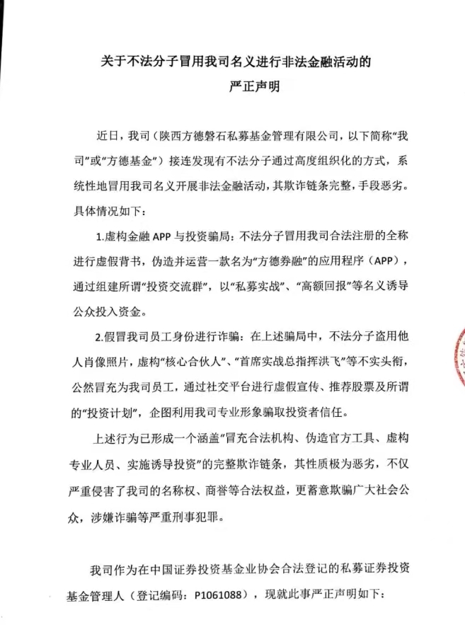 洪飞,方德券融,骗大家本金,官方证明!