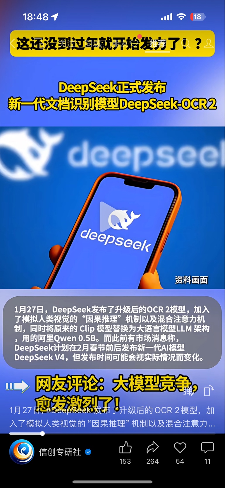 下午2点半发布的Deepseek貌似没有激起什么水花