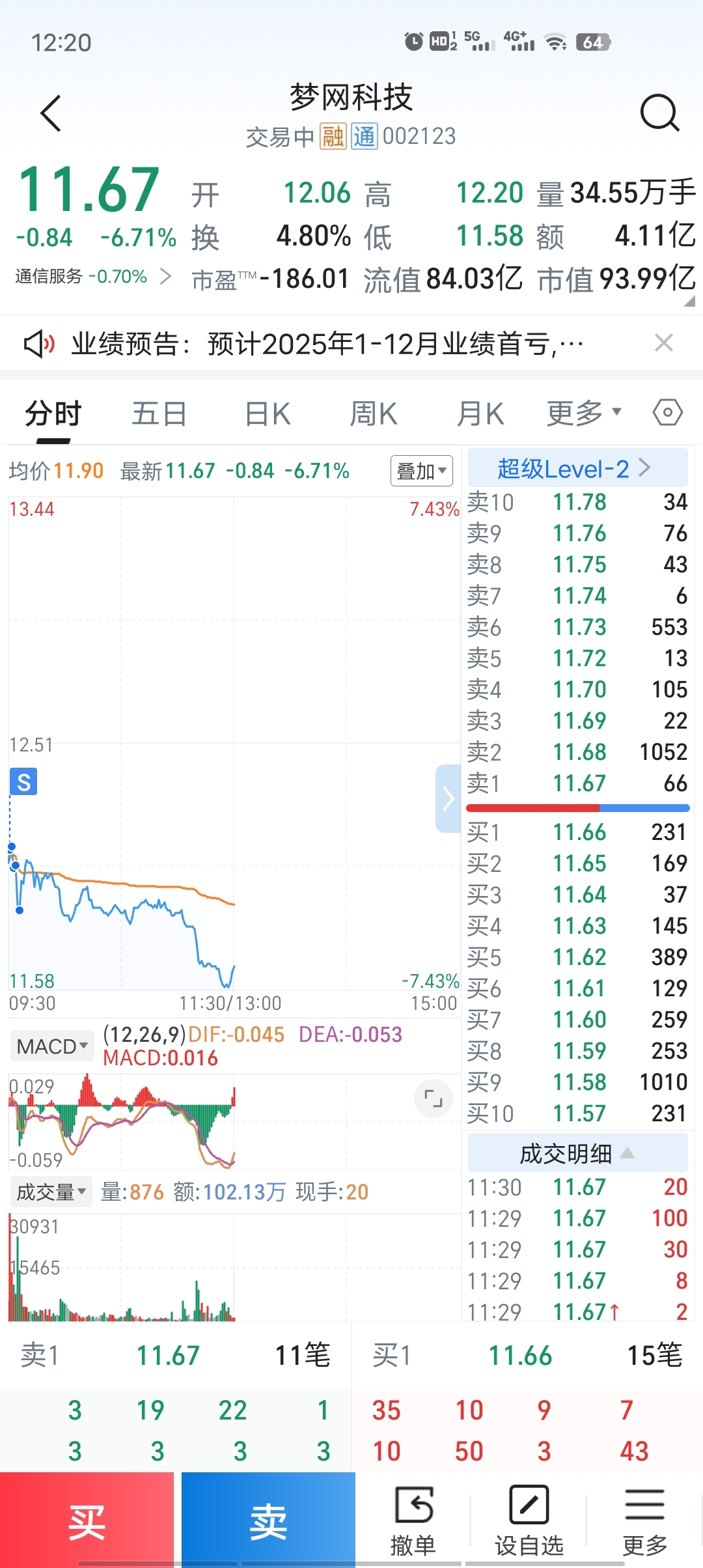 $梦网科技(SZ002123)$ 有苦难言还有一半下午无论反弹几个点清仓拉黑,上次13.70亏8个点割肉跑了,昨天下午手贱还是12.55左右买了700手心想调整这么久了幻想今天能涨停,谁知道晚上出个公告一晚上没睡,算上前面25年20以上割肉差不多满仓亏了20多个点,碰不得这票有毒