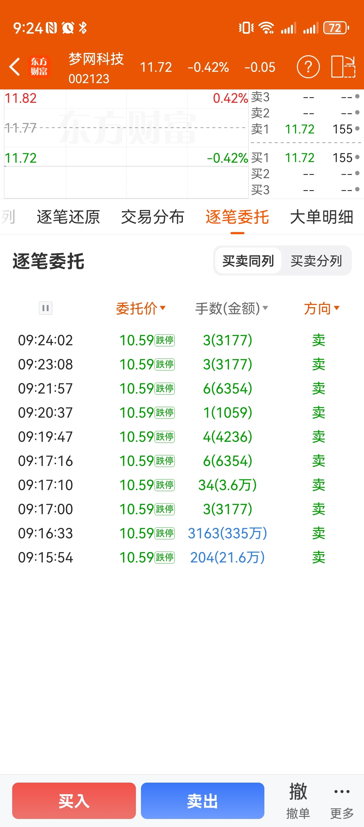 $梦网科技(SZ002123)$ 是有什么潜在大雷么,连着两天跌停挂单,撤单