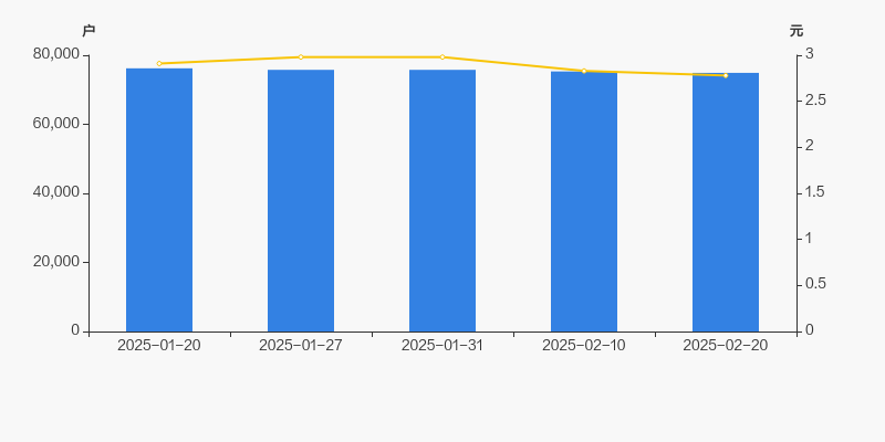 2025年1月20日至今,公司股东户数有所下降,区间跌幅为1.73%。2025年1月20日至2025年2月20日区间股价下降4.47%。