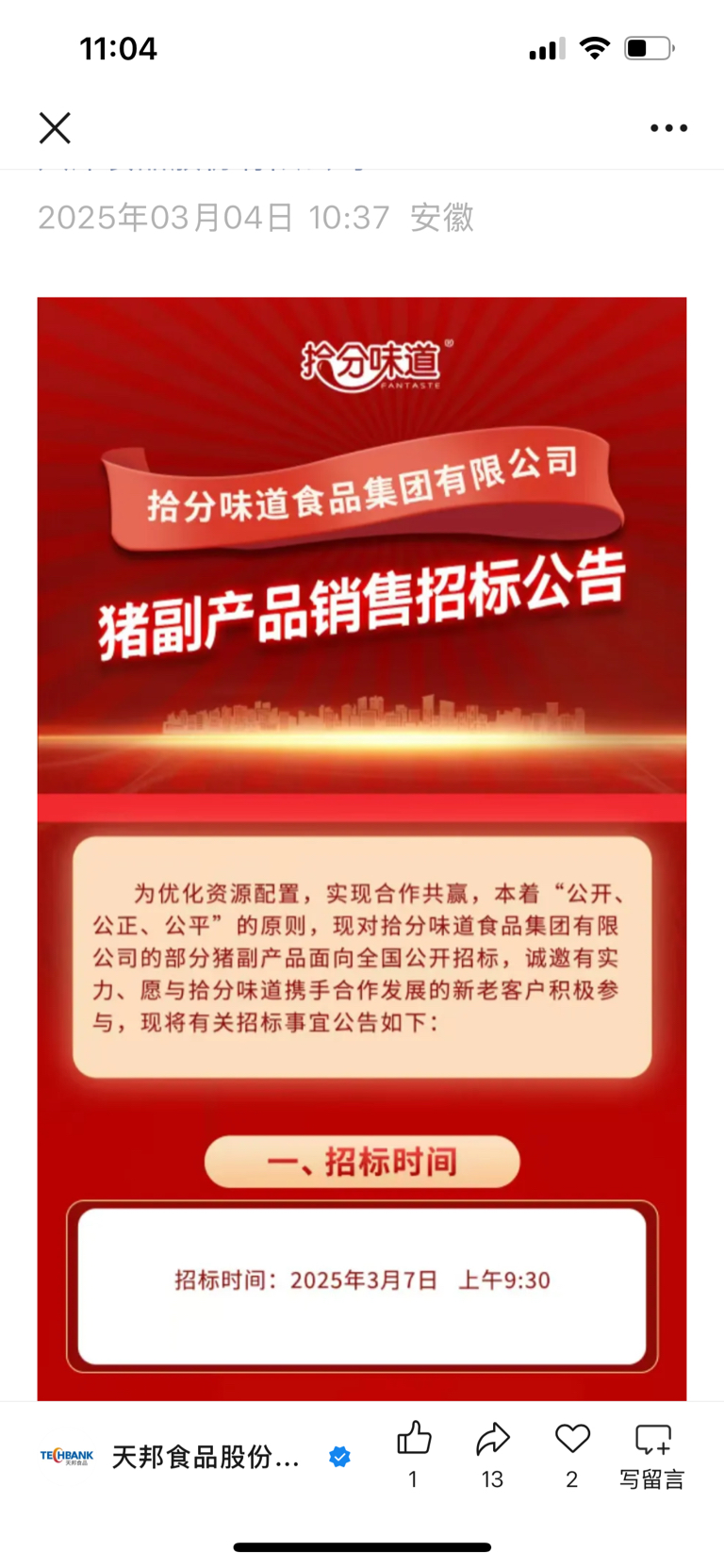 $ST天邦(SZ002124)$ 天邦生意是不是很好呀,卖产品还要招标,股市就天天打压,这么也要看底牌吧