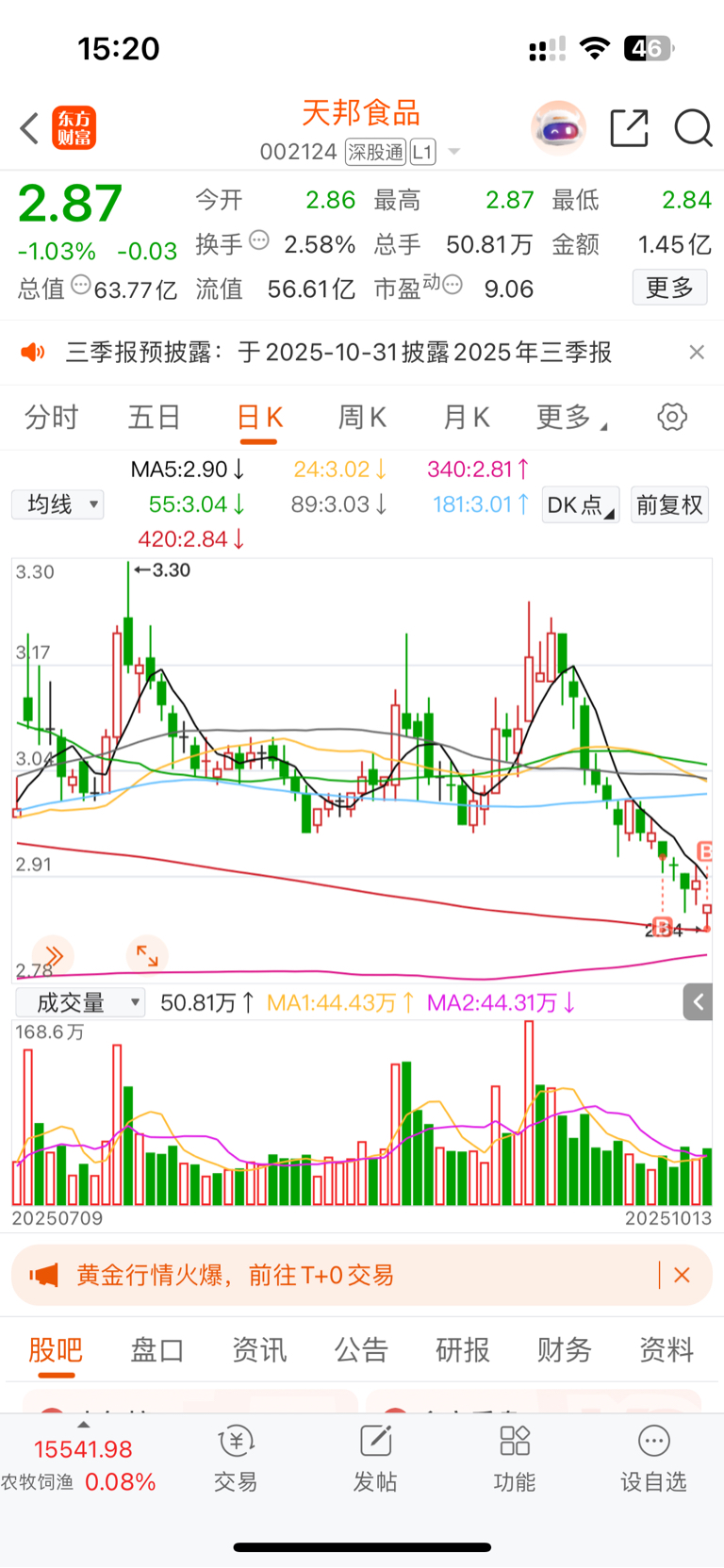 $天邦食品(SZ002124)$ 竞价挂了2.84开盘成交了,看波反弹吧,高度181。