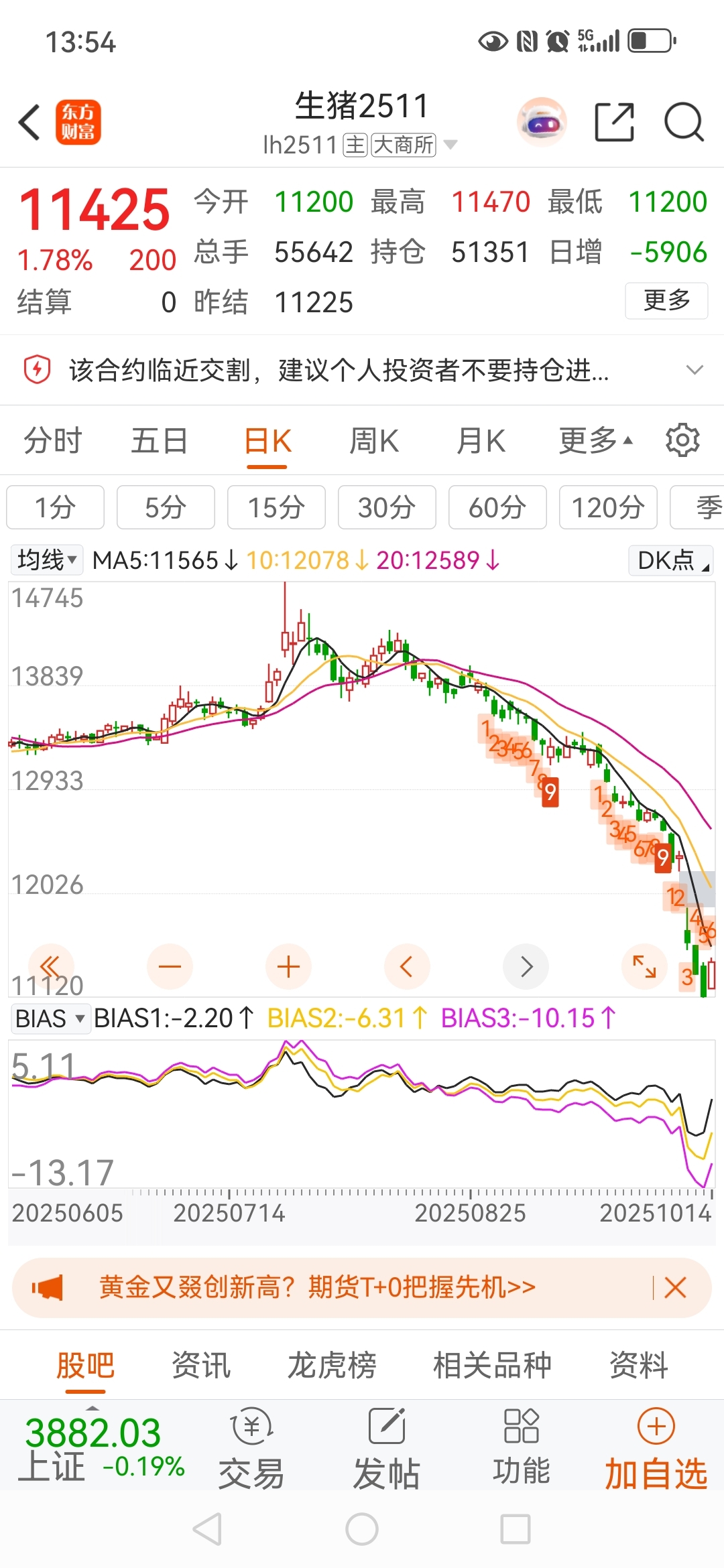 $天邦食品(SZ002124)$ 生猪底部反转了!跌吧跌吧