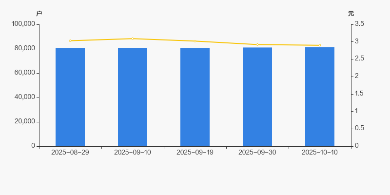 2025年8月29日至今,公司股东户数有所增长,区间涨幅为0.86%。2025年8月29日至2025年10月10日区间股价下降4.29%。