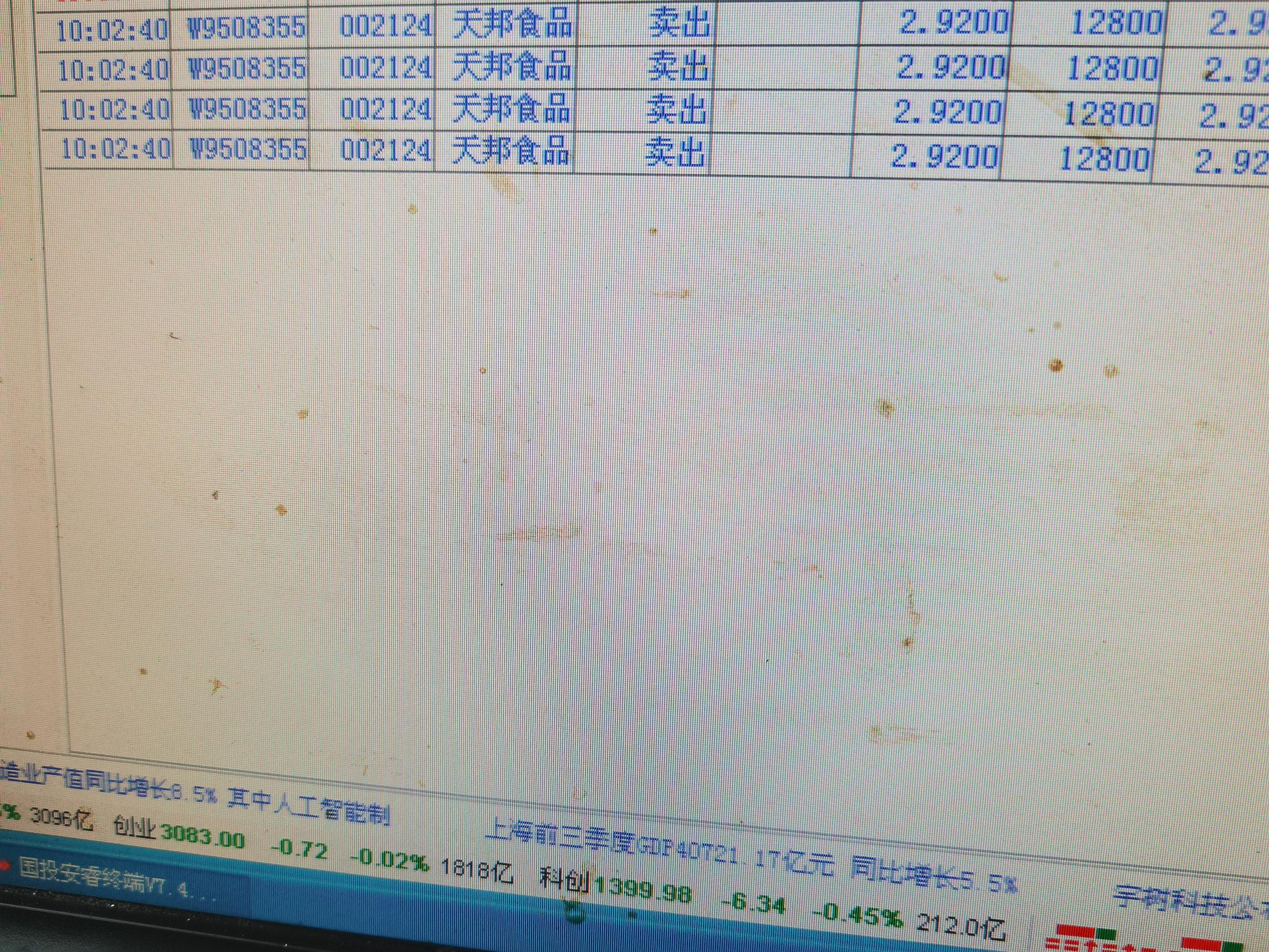 $天邦食品(SZ002124)$ 昨天2.85买的清仓了,明天再跌再回来!买了三只滞涨股票只有你今天在砸盘,不卖你卖谁!st明诚和红棉股份都在涨!