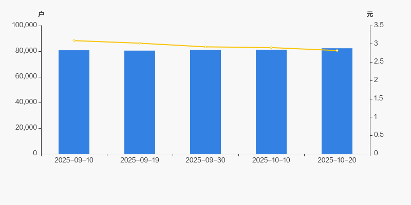 自2025年9月19日以来,公司股东户数连续3期上涨,截至目前增幅为2.29%。2025年9月19日至2025年10月20日区间股价下降6.62%。